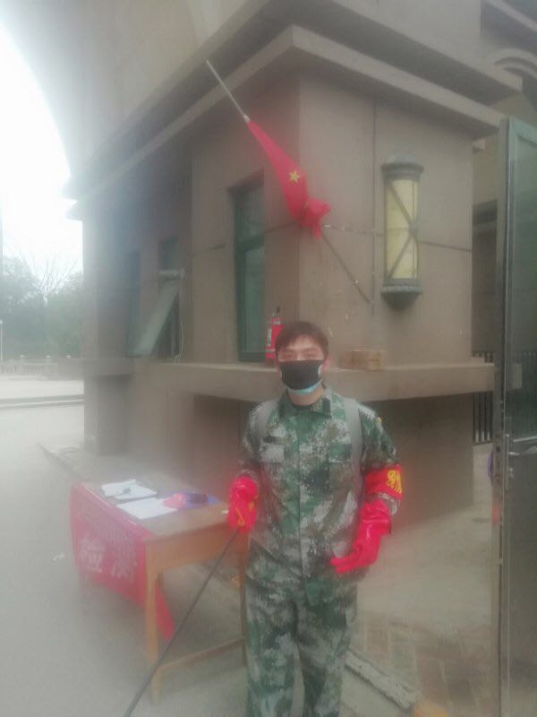 “张炯改变了我对大学生的看法,他这十几天每天风雨无阻到岗位,把党徽带在最明显的地方,每当社区出入人员问他是不是新来的实习生时,他都会回答他是党员。”负责社区防疫任务的负责人杜宏涛对张炯同学高度赞扬,他说他在熟悉张炯后,改变了对大学生一直以来的看法,他夸奖张炯不怕苦不怕累,每天上午牺牲他写毕业论文与准备研究生复试的时间来站岗,每天下午定点背着沉重的药桶对电梯、楼道等地方进行消毒。张炯说他现在最珍贵的就是时间,所以他把他的时间贡献出来抗疫。