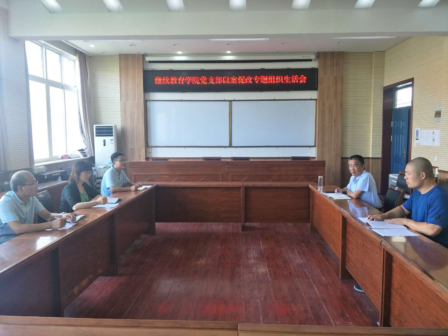 (通讯员 李凯)8月10日上午,在2号教学楼A座307继续教育学院党支部召开“以案促改”专题组织生活会。党支部书记、院长马宁奇与支部全体党员参加会议。