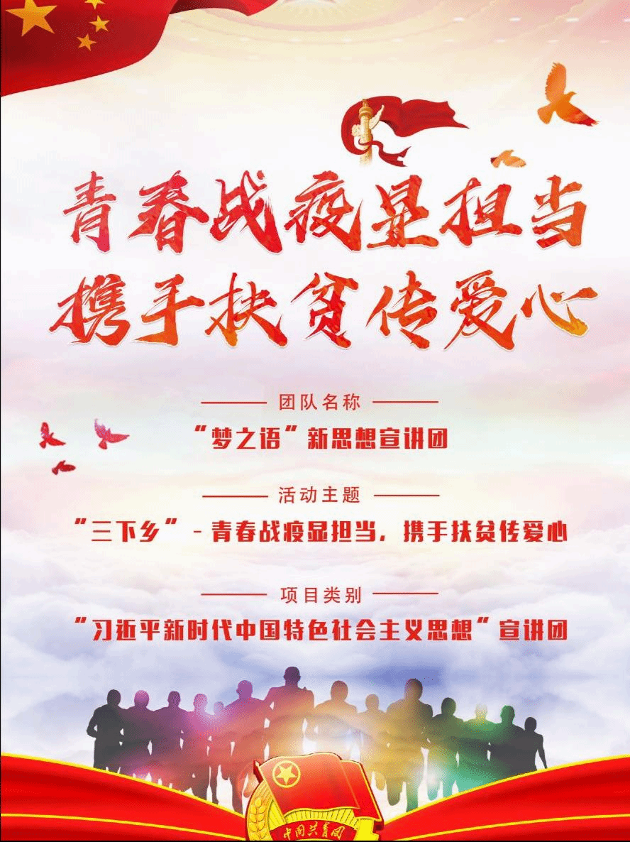 不同的时空场景,呈现的是整齐划一的行动;不同的宣讲主题,表达的是共同的思想信念。在炎热的暑假,团队成员们开展三下乡社会实践活动,不仅增强了自己对习近平新时代中国特色社会主义思想的认识和了解,体会到了团队合作的力量,也在社会实践过程中,以青年视角尽青年所能,为传播习近平新时代中国特色社会主义思想贡献青春智慧,为实现中华民族伟大复兴的中国梦而不懈奋斗,这就是青春最美的模样,这就是青春最靓丽的色彩!