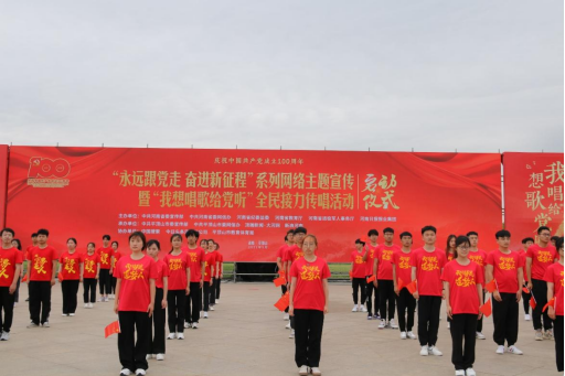 (通讯员:李思源 单意)为庆祝中国共产党成立100周年,讴歌党的丰功伟绩,广泛宣传党的光辉历程、伟大成就和优良传统。“永远跟党走,奋进新征程”系列网络主题宣传暨“我想唱歌给党听”全民接力传唱活动,于5月23日在平顶山市正式启动,我院学生合唱团参加了本次启动仪式。