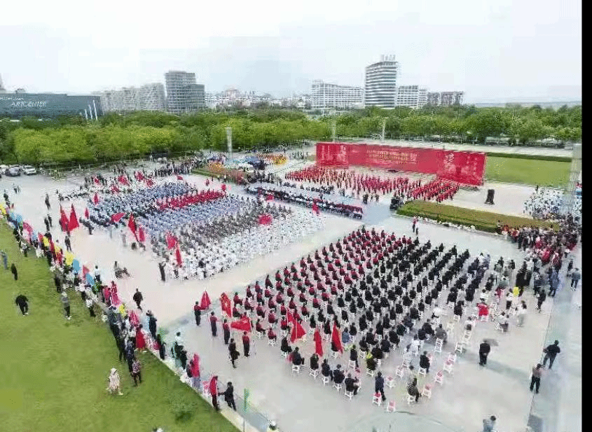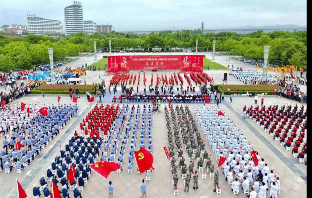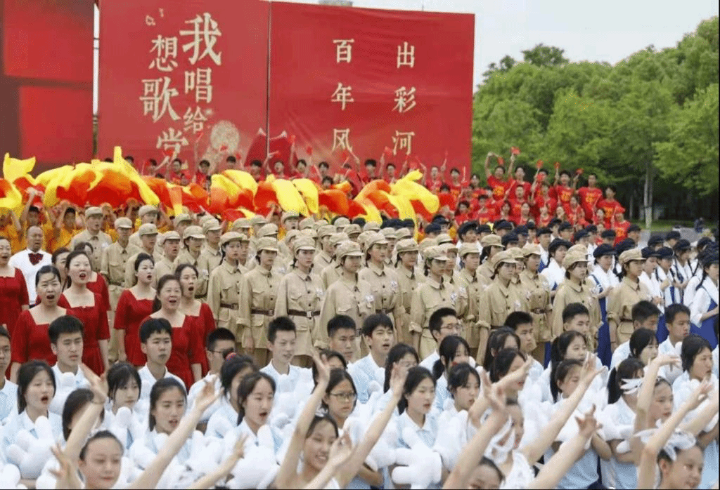 阳光洒遍大地,将整个鹰城置于怀抱当中。一段舞蹈《向往》拉开了序幕,随后,我院优秀学生齐唱《我和2035有个约》,将现场气氛推向高潮。最后,全场千余人齐唱《没有共产党就没有新中国》,歌声嘹亮、激昂、高亢,唱出了对党的无限忠诚与热爱,唱出了对国家美好明天的深深祝福。省、市相关部门负责人还为采访团和接力传唱团代表授旗。
