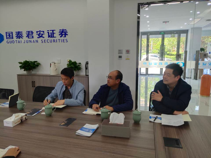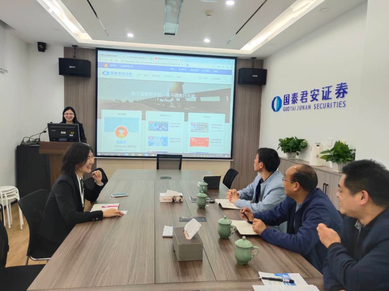(图为国泰君安耿千淇经理向领导老师们介绍公司发展状况)