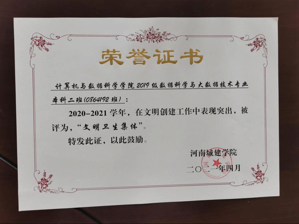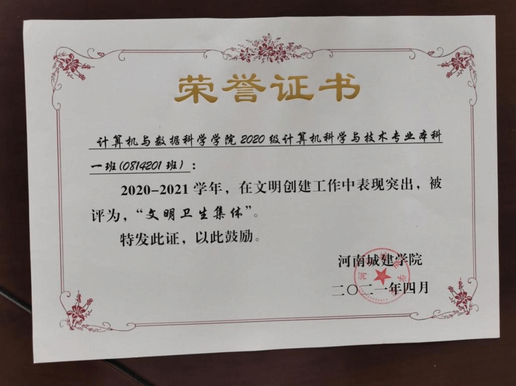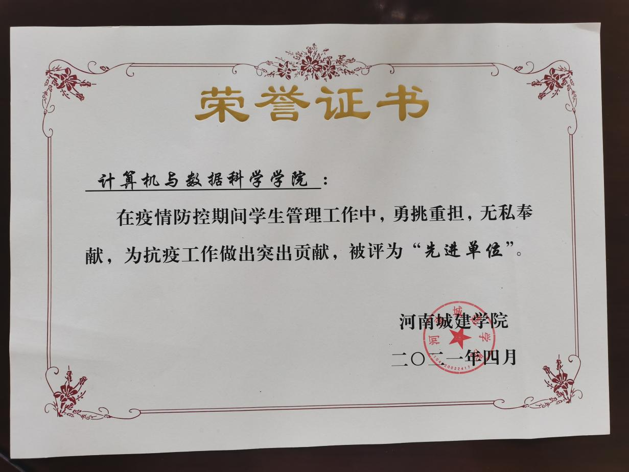 (通讯员 王占洲)为贯彻党的教育方针,落实立德树人根本任务,促进学生的全面发展,根据《关于开展河南城建学院2020-2021学年“文明卫生集体”“文明卫生先锋”评选活动的通知》精神,计算机与数据科学学院在疫情防控期间学生管理工作中,勇挑重担,无私奉献,为抗疫工作做出突出贡献,被评为“先进单位”;徐妍、李洋两位同学评为“先进个人”;郭涵博,王昊楠等20名同学被评为“文明卫生先锋”荣誉称号;0864192班、0814201班、0854181班、0824181班被评为“文明卫生集体”。