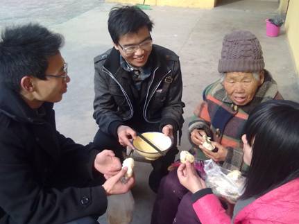 志愿者们带着礼品来到敬老院时,有的为老人打扫卫生,陪老人聊天,有的为老人洗手、喂包子、陪着老人看电视。看到老人们眼中留露出最真诚的谢意,志愿者们无不感到高兴欣慰。院长对志愿者的到来热烈欢迎,同时表达了诚挚的谢意。当志愿者们走的时候,老人们都依依不舍地与他们挥手告别。