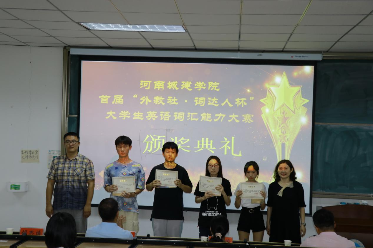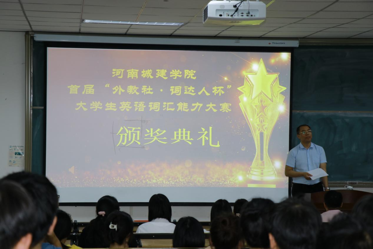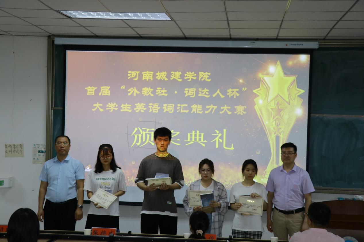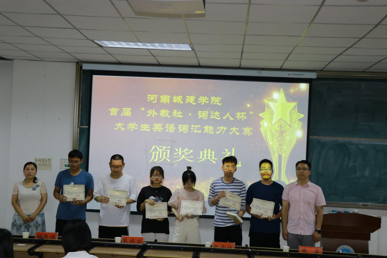 (通讯员 张湘雨)6月8日,外国语学院于和谐校区1号楼326教室举办了河南城建学院首届“外教社•词达人杯”全国大学生英语词汇能力大赛颁奖仪式。校创新创业学院副院长张崭,校团委副书记张金俊,外国语学院党委书记王东旭,外国语学院副院长张换成、张凤琴,外国语学院党委副书记胡思博及外国语学院党政办主任、科研与校企合作办、团学办、翻译系、大学英语教研室、工程英语智能翻译与语料数据中心等部门负责人出席颁奖仪式。