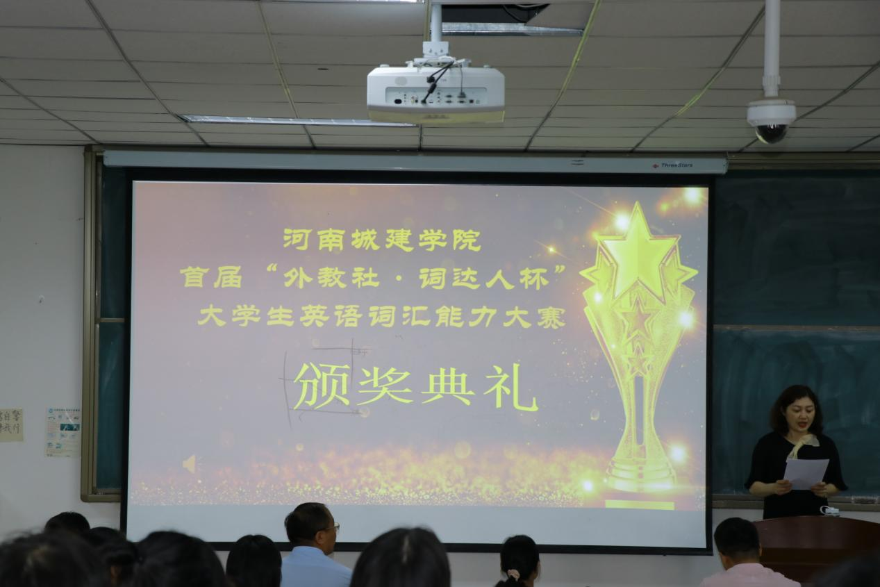 张凤琴宣读了河南城建学院首届“外教社•词达人杯”全国大学生英语词汇能力大赛大学英语组和专业组的获奖名单。