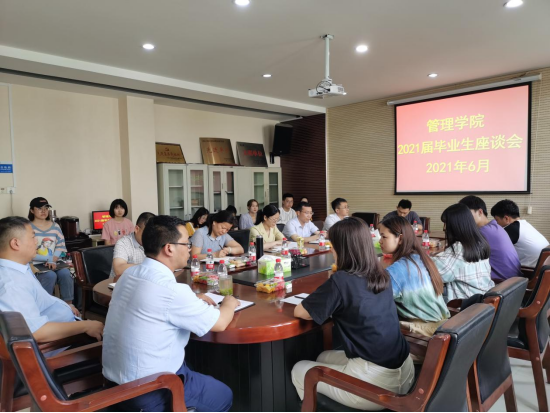 (通讯员 邢瑞杰)6月8日上午,管理学院毕业生座谈会在8号楼会议室顺利举行,管理学院书记尹振羽、院长张大力、副院长王炳刚、工程管理系主任冯宁、工程造价系主任董晓峰、市场营销系主任马明龙、财务管理系主任万林葳与各专业学生代表出席座谈会。