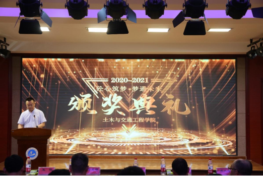 (通讯员 陈黎明)为了选树优秀学生典型,弘扬时代青春正能量。6月8日下午,土木与交通工程学院2020年度“砼心筑梦、梦通未来”颁奖典礼在4号教学楼音乐教室隆重举行。土木与交通工程学院院长宋新生、土木工程与智慧交通研究中心主任李爱增、党委副书记杨国洲、副院长王仪、副院长吕大为、学工办主任魏艳楠、各教研室主任、全体辅导员及获奖学生代表200余人齐聚一堂,共同见证了典礼荣光。