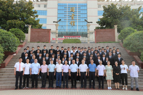 颁奖典礼结束后,与会领导嘉宾与获奖学生代表移步图书馆前喷泉广场合影留念。