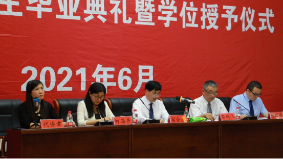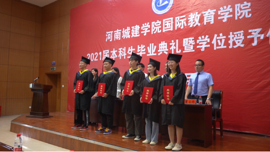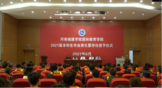 仪式在庄严肃穆的国歌中拉开帷幕。副院长代博君宣读了表彰省级和校级优秀毕业生及优秀学生党员的文件。副院长董召锋宣读了国际教育学院2021届取得学士学位毕业生名单。