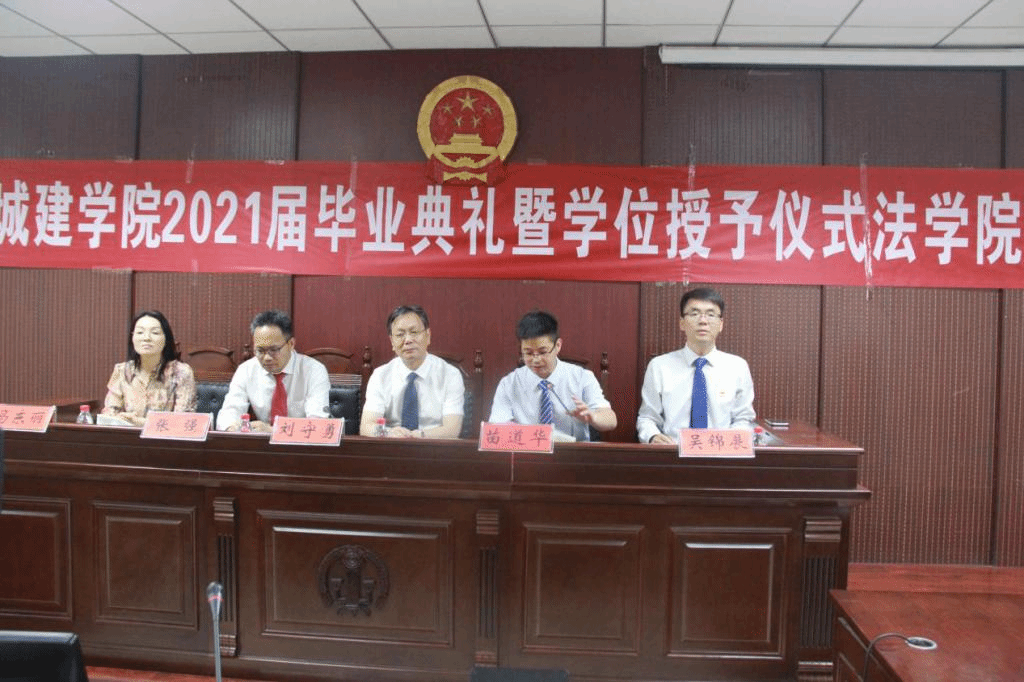 (通讯员:倪明 宋李想)又见拨穗礼,情满毕业季。法学院于6月9日上午在和谐校区121模拟法庭举办河南城建学院2021届毕业典礼暨学位授予仪式法学院专场。校纪委书记、监察专员刘守勇、法学院领导班子成员及教师、家长代表同毕业生一起参加典礼,本次活动由法学院党委书记苗道华主持。