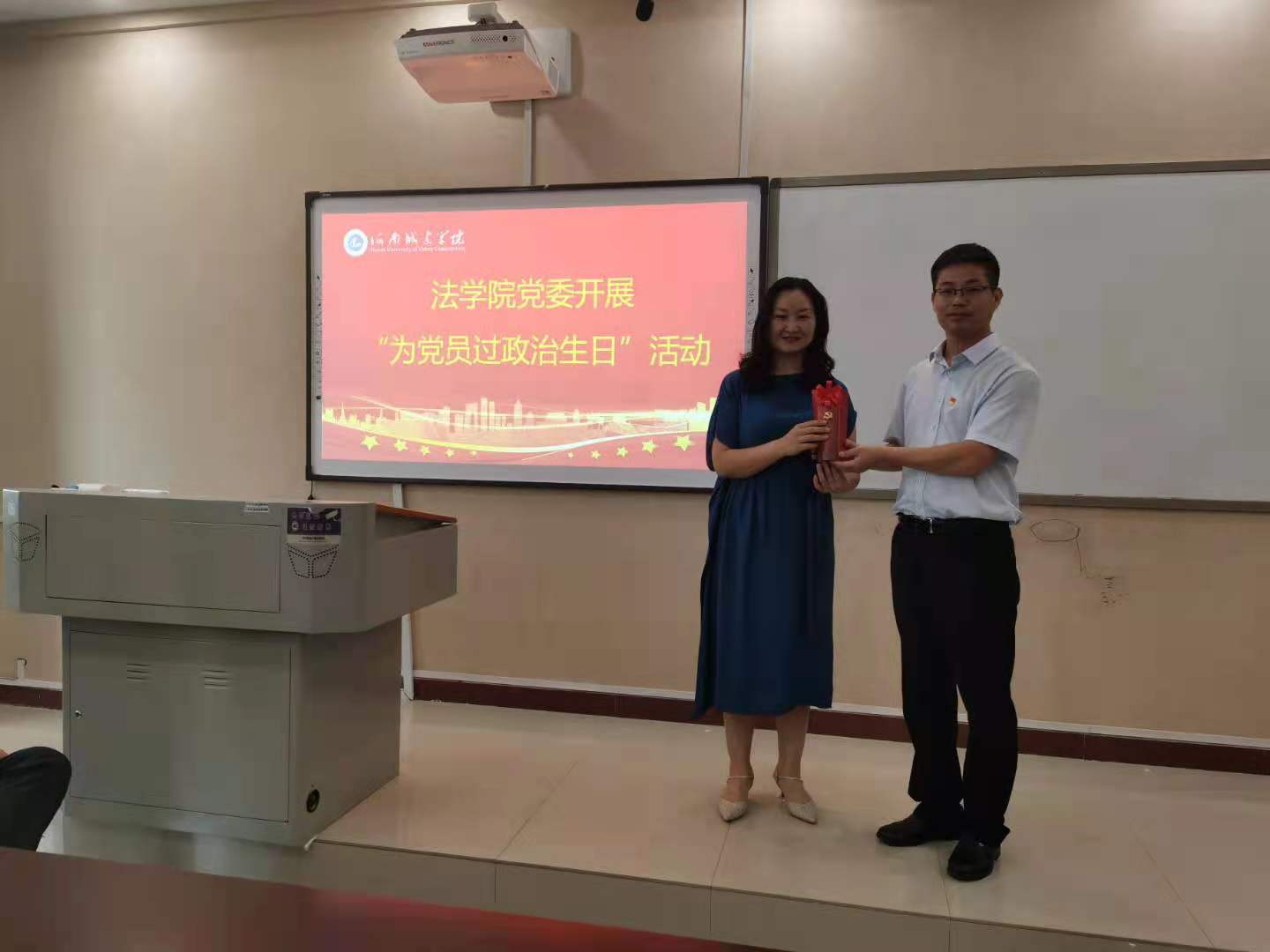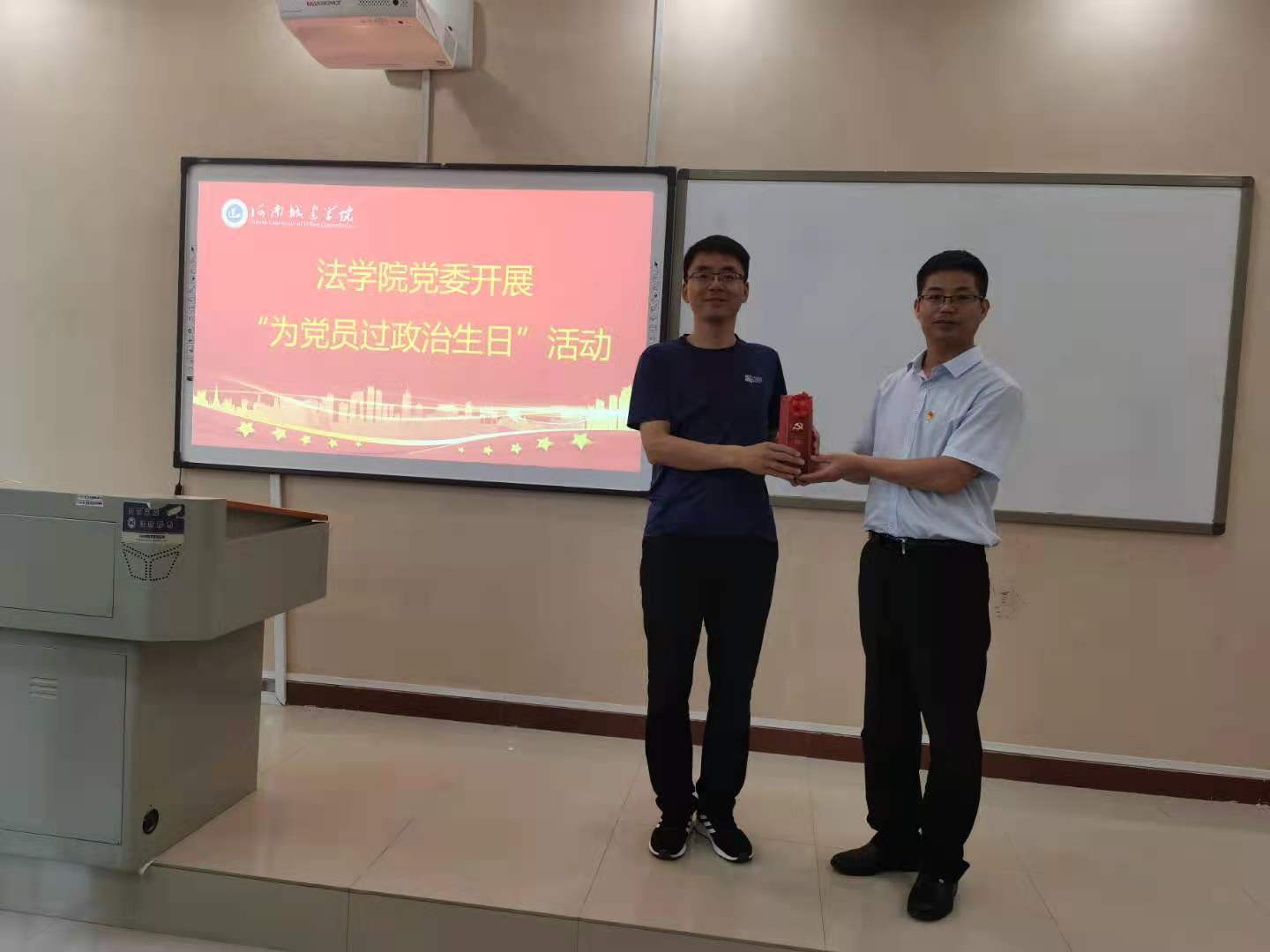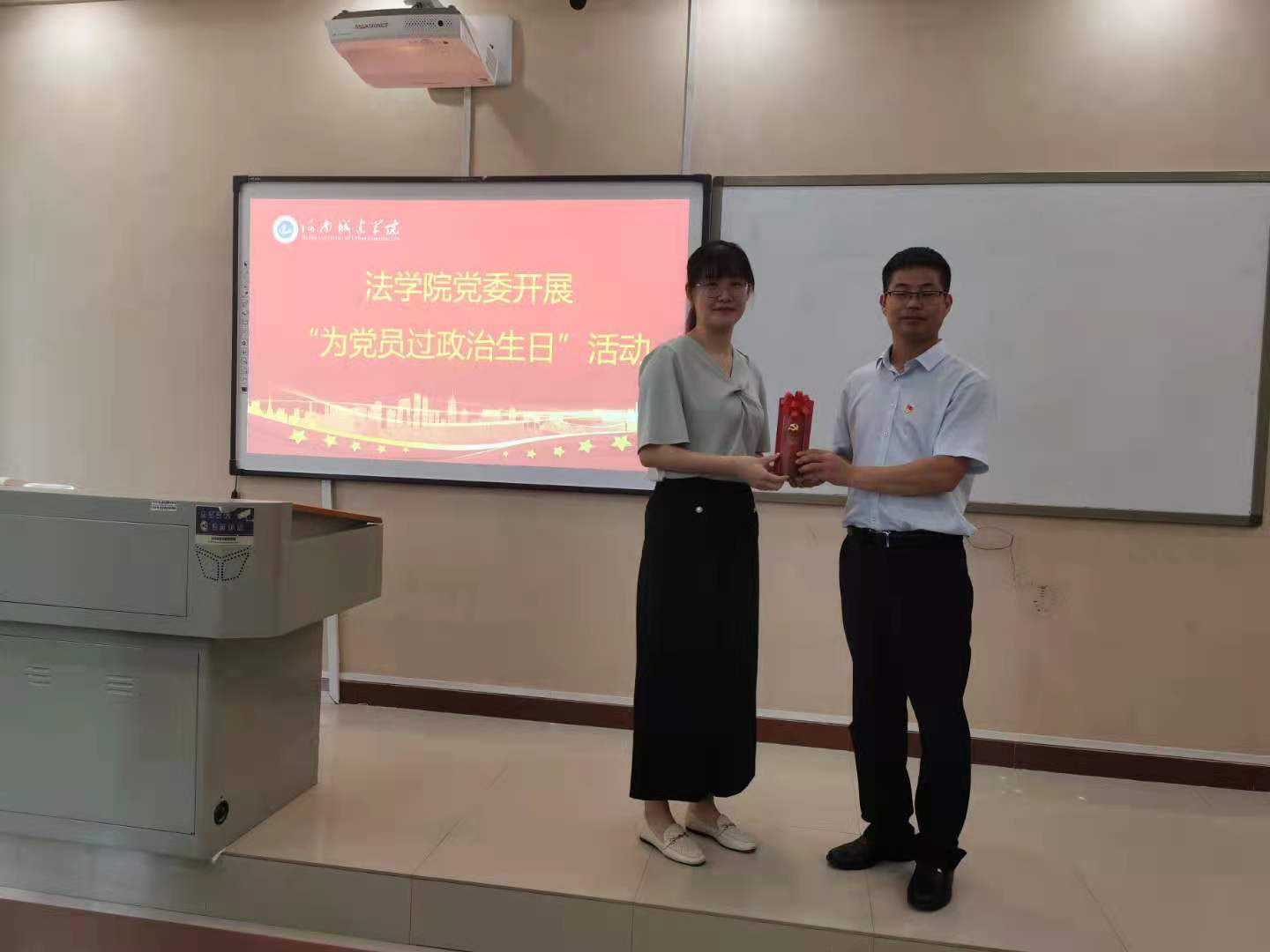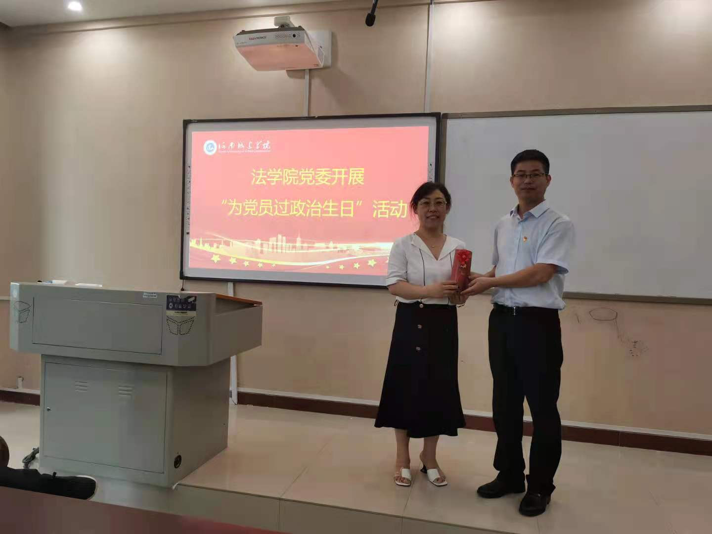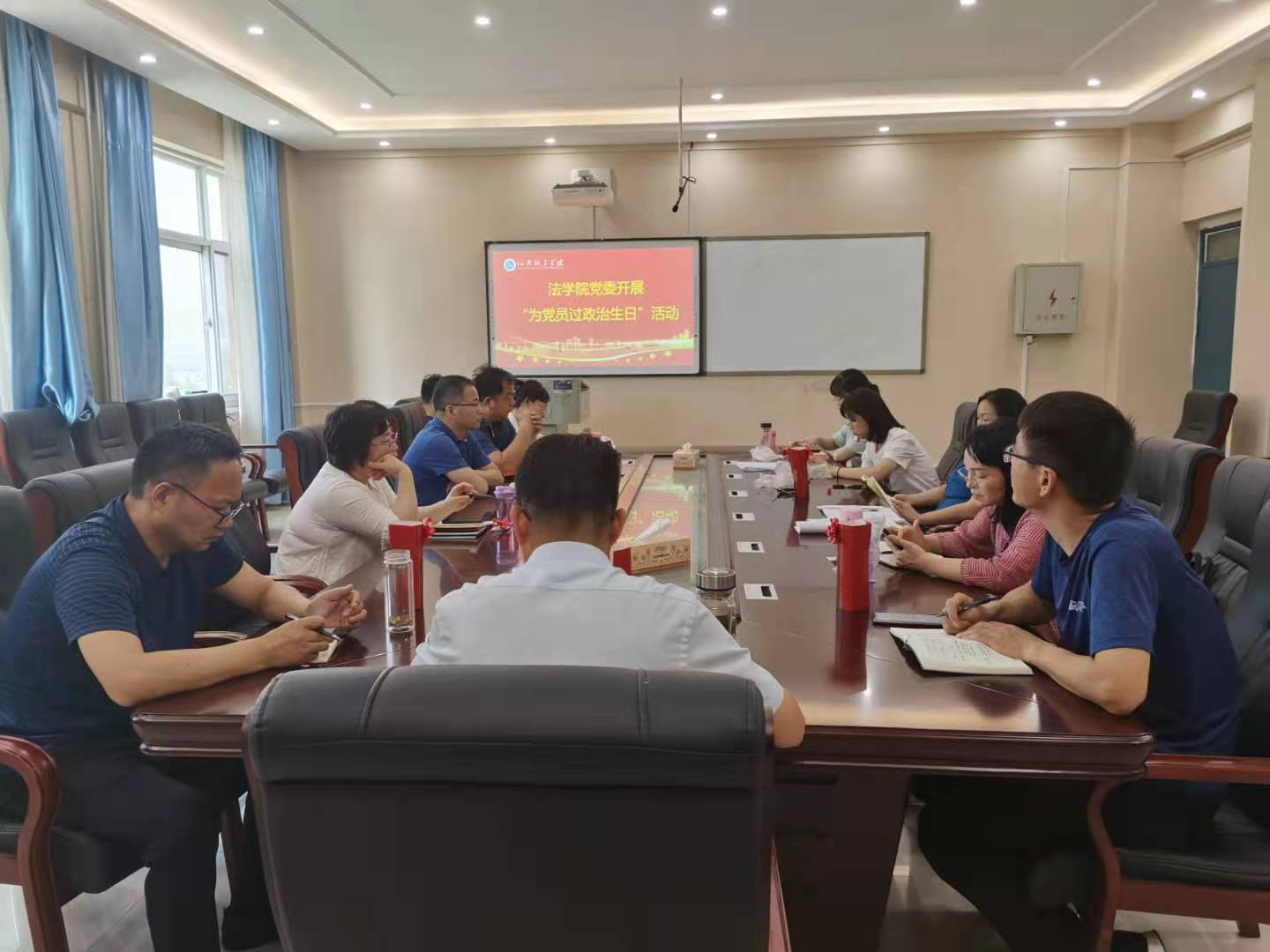 (通讯员:汤继华)为庆祝党的百年华诞,深化党史学习教育,进一步加强和规范党内政治生活,6月30日下午,法学院党委为党员集体过“政治生日”。法学院全体教师党员参加活动,活动由党委书记苗道华主持。