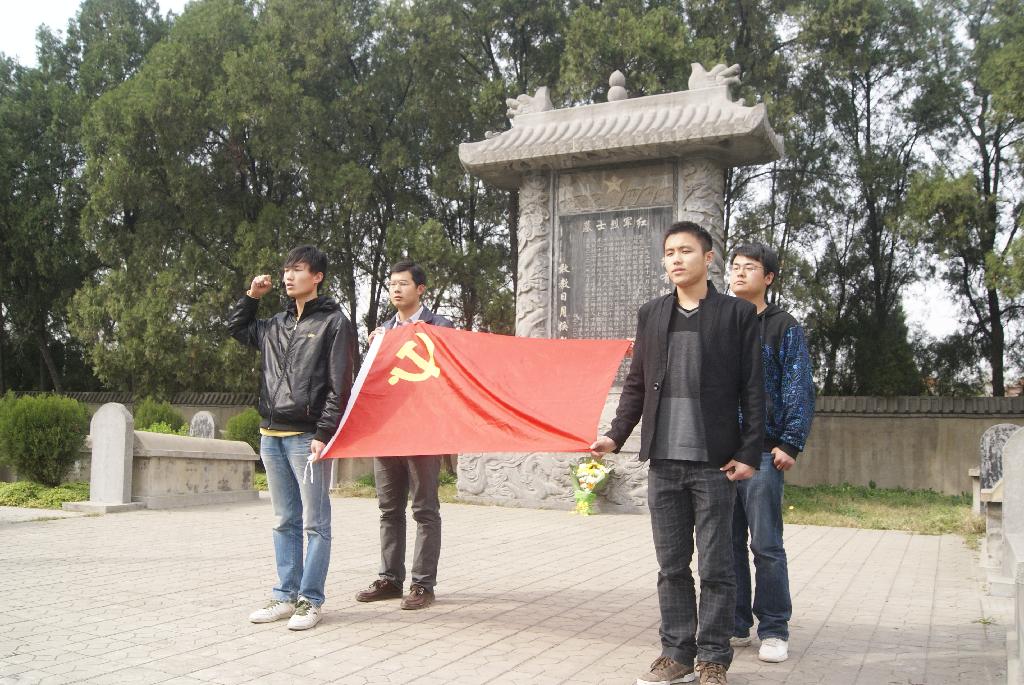 3月30号下午2:00,师生们到达叶县革命烈士陵园,在工作人员向大家介绍了革命先烈的伟大英雄事迹后,党员代表向长眠于此的革命先烈敬献了鲜花,表达对他们的哀思与怀念;随后系党总支副书记尹振羽发表了简短的讲话,他指出是无数革命志士抛头颅、洒热血,才有了今天的民族自立和安定生活,并要求广大学生党员作为新时代的优秀青年,要继承先烈们忠于人民、忠于革命、忠于党的崇高共产主义信念,为国家的繁荣昌盛和中华民族的伟大复兴做出自己应有的贡献。在庄严肃穆的革命英雄烈士纪念碑前,党员们举起右手,面对党旗,重温了入党誓词,“为共产主义奋斗终身,随时准备为党和人民牺牲一切,永不叛党”,宣誓声久久回荡在纪念碑前。