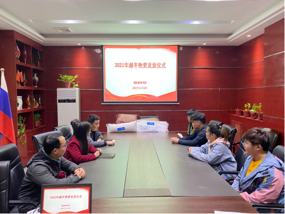 (通讯员 张锐)为进一步推进“资助育人”工作,国际教育学院于11月18日16点30分在学院211会议室举行2021年越冬物资发放仪式,副院长代博君,团学办副主任张锐,辅导员阿远及部分受助学生代表参加活动。