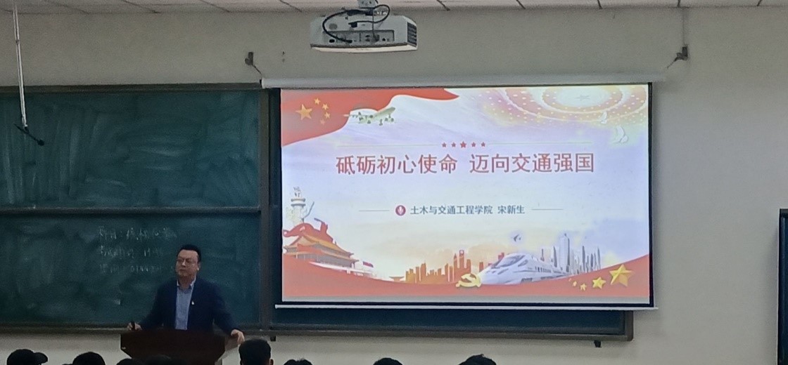 (通讯员 徐梦杰 李文博)12月15日下午,土木与交通工程学院院长宋新生在10号楼B107开展以《砥砺初心使命,迈向交通强国》为题给学生党员上形势与政策课。