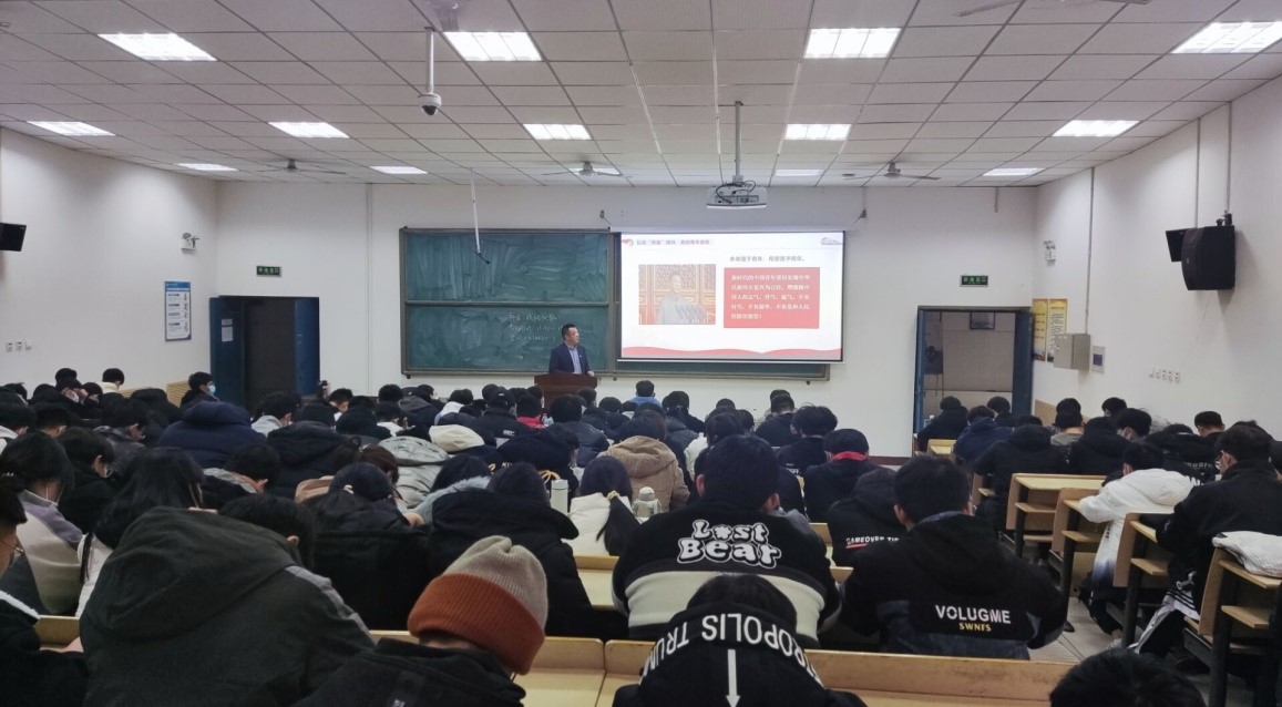 宋新生从共产党人的初心和使命切入,指出“为人民谋幸福,为民族谋复兴”是我们党亘古不变的初心和使命,身为一名共产党人,在国家发展和进步面前需要承担责任和义务。随后,宋新生结合自己的所见所闻,回顾了新中国成立以来祖国交通运输事业发展的艰辛历程,以详实生动的故事让同学们形象地了解我国交通发展历史和取得的举世瞩目成就。最后,宋新生指出:新时代青年要弘扬“两路”精神,勇担青年使命,增强做中国人的志气、骨气、底气!勇于担当起时代责任和历史使命。