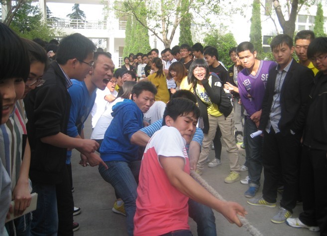 5月4日上午9时,该系自办的小型运动会在5#楼AB座之间准时开赛,来自全系15个班级的15支代表队参加了比赛。测绘系党总支副书记吕鹏飞、高松峰及团总支、学工办负责人等现场指导工作并为运动员加油。比赛分为拔河、跳绳、阳光伙伴3个项目。