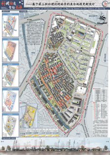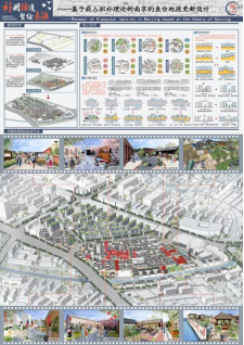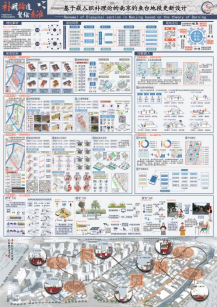 第二组作品题为:补阙拾遗,繁绘秦淮——基于嵌入织补理论的南京钓鱼台地段的更新设计,由邢燕、赵玉凤老师指导,小组成员有:张金瑶、屈晨晨、李会静、葛雨晴、曹尚武,获得最佳落地奖。