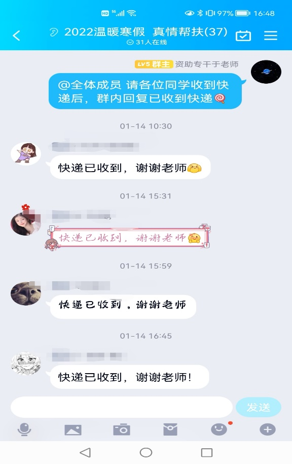 (学生收到慰问品)