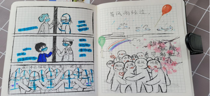 画报比赛开展后,在学院学生会权益部的有力组织下,同学们积极报名,主动参与创作,作品的创作形式多种多样,有手抄报·水彩画·速写等。同学们的作品中真实的呈现出疫情当下让人心动的感人瞬间。