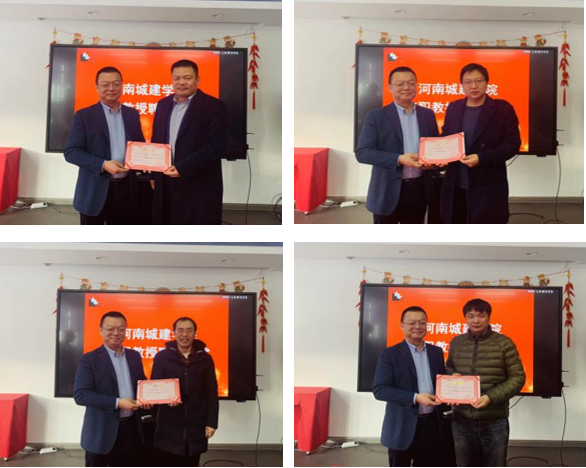 座谈会上,龙莉波总工程师对河南城建学院一行的到访表示欢迎,并介绍了公司目前的发展情况和未来发展战略。他指出,借助高校的科研人才力量和硬件设施,可为企业的科技研发赋能升级,企业与高校的紧密合作有利于形成优势互补、共同发展、产学研一体化的共赢局面。宋新生院长表示,上海建工二建集团与河南城建学院的合作由来已久,也获得了丰硕的成果。在此基础上,双方还存在巨大的合作空间,希望在未来进行更深层次的校企合作。随后,王竹君介绍了二建集团的核心技术研发进展与科研平台的建设情况,宋帅奇汇报了双方合作成果以及学校学院在人才培养、科学研究、学科专业建设等方面取得的新业绩。双方就科学技术奖励申报、校企科研项目合作、硕士点建设、教师工程实践锻炼和学生实践实训、土木类工科专业升级改造等问题进行了深入交流,共同谋划下一步发展合作规划,并达成多项合作事宜。座谈会上,还举行了河南城建学院兼职教授聘任仪式,龙莉波、席金虎、章宜、汪思满、马跃强受聘为我校兼职教授。