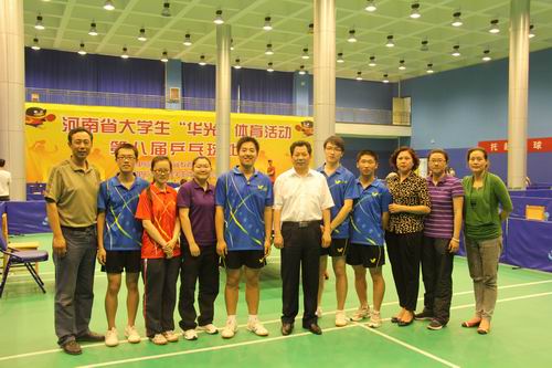 (通讯员 罗代)河南省大学生“华光”体育活动第八届乒乓球比赛5月18日——5月23日在我校举行。5月19日、20日,李德平书记、孔留安院长亲临比赛现场,观看我校代表队比赛并亲切慰问教练员、运动员。