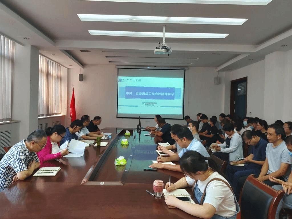 (通讯员 王龙菲)为了深入学习中央、省委统战工作会议精神,9月6日,电气与控制工程学院召开了中央、省委统战工作会议精神专题学习会议,学院全体教职工参加会议。会议由学院党委书记杜留记主持。