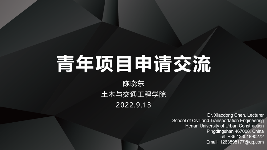 随后,由我院今年两位新晋国家青年基金获得者屈讼昭博士和陈晓东博士作了国家自科基金申报经验分享。两位博士认为基金申报要紧紧围绕国家发展战略形势,并与博士研究课题有机结合,注重技术创新与方法创新,强化团队沟通交流,才能提高中标几率。