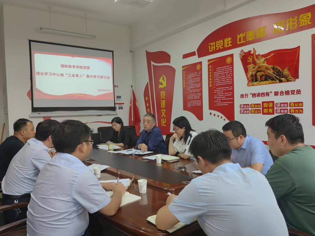 (通讯员:肖婧婧)为进一步深化“三全育人”综合改革,全力构建“三全育人”格局体系,不断强化“三全育人”工作针对性和实效性,9月14日上午,国际教育学院党委理论学习中心组在和谐校区201室召开“三全育人”集中学习研讨会。会议由党委书记吕鹏飞主持,学院全体党委委员、学校巡听旁听第一督查组成员参加会议。