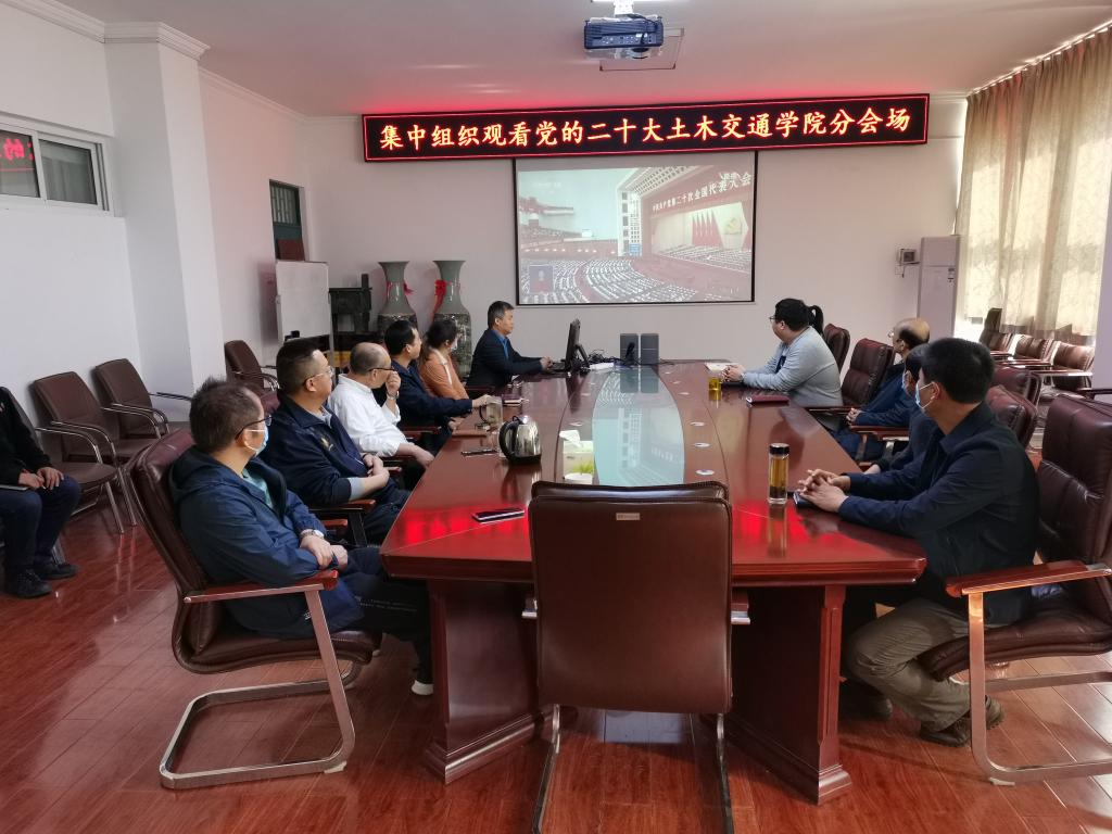 (通讯员 田野)中国共产党第二十次全国代表大会于10月16日上午10时在北京人民大会堂开幕。土木与交通工程学院在10号楼座二楼会议室组织学院领导班子、各部门负责人集中收看,各专业系教师、学生通过网络、电视等形式收听收看党的二十大开幕会直播盛况。