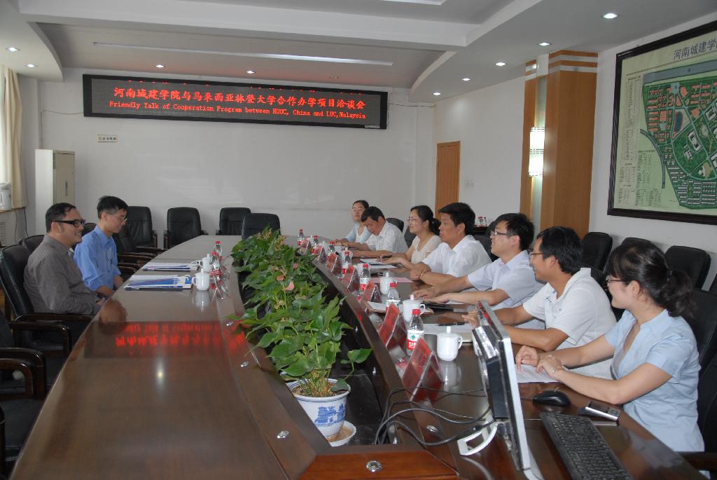 (通讯员 刘晓燕)6月18日,马来西亚林登大学(Linton University College, Malaysia)副校长张铭财教授和林登大学建筑管理学院副院长陈兆璋教授一行两人来我校访问。双方在我校第一会议室座谈。陈丙义副校长出席座谈会并致欢迎辞。国际合作与交流处和国际教育学院领导及我校赴马来西亚林登大学学习归来的三位专业教师参加交流座谈。