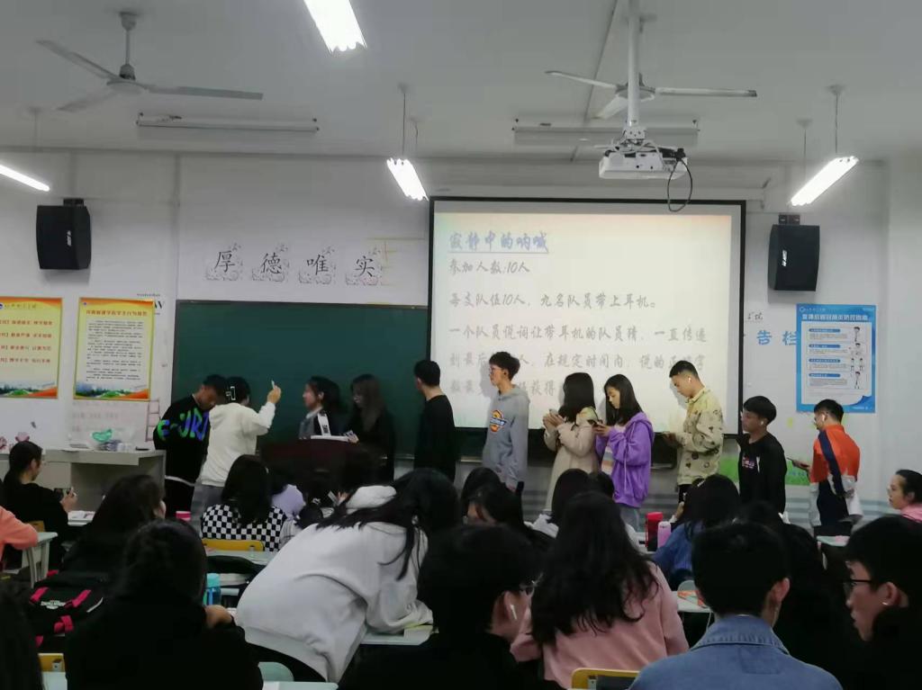 学院优秀心理委员代表史东怡和钱梦男同学首先为与会同学讲述排解压力的适当方法,希望同学们科学对待压力以及负面情绪,能以合适的方法进行排解。并以自己的亲身经历为例,告诉大家如何从心理上快速适应大学生活。随后,两位心理委员代表组织大家参与“你说我猜”和“寂静中的呐喊”等小游戏,让同学们从平常的生活学习压力中得到短暂的放松和休息,本次活动在同学们的欢声笑语中进入尾声。