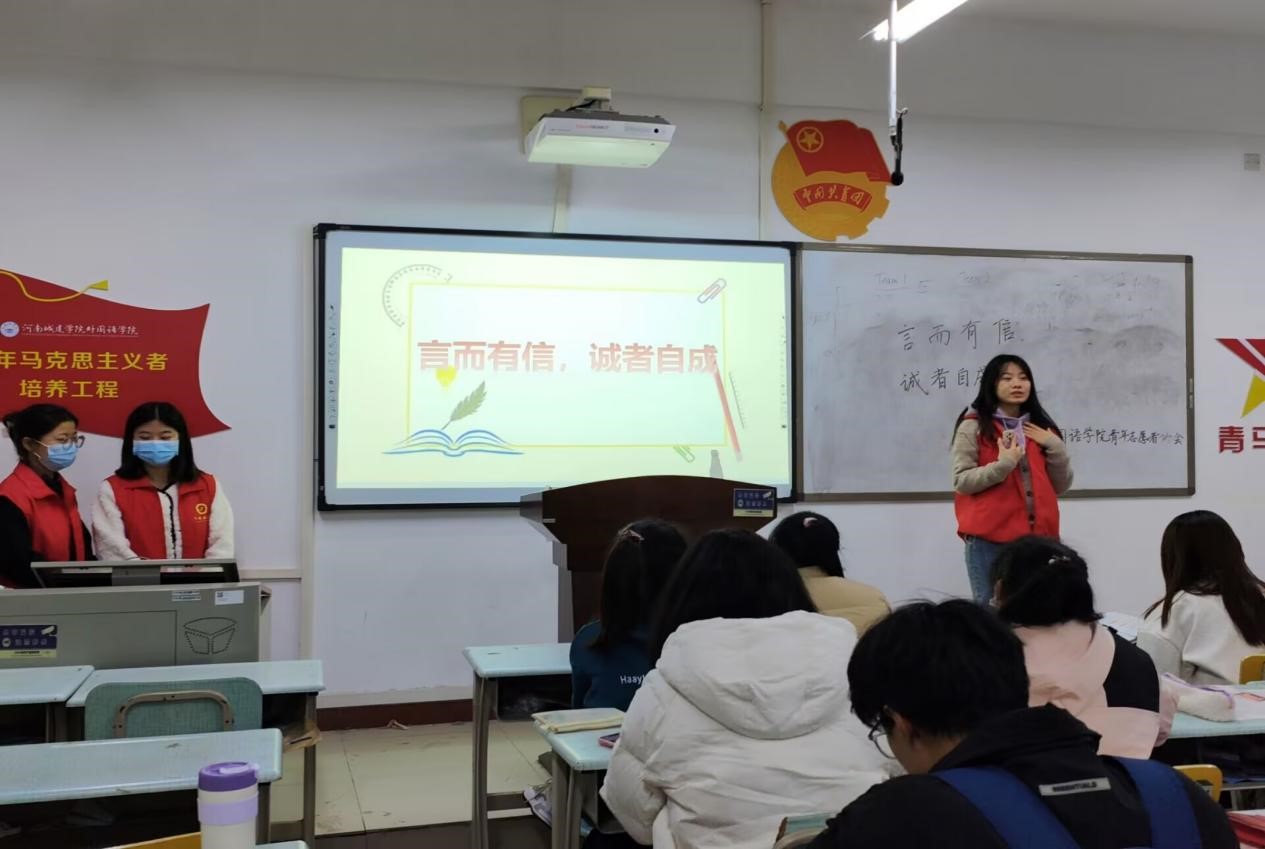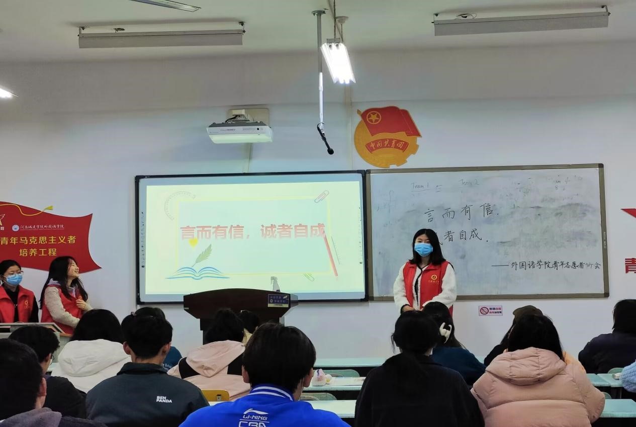 (通讯员 杨玲玲 谢宇阳)为大力弘扬诚信文化,切实提升学生的诚信品质,增强大家的自律意识。11月17日晚,外国语学院在美荟楼302教室组织开展以“言而有信,诚者自成”为主题的文明月宣传活动。