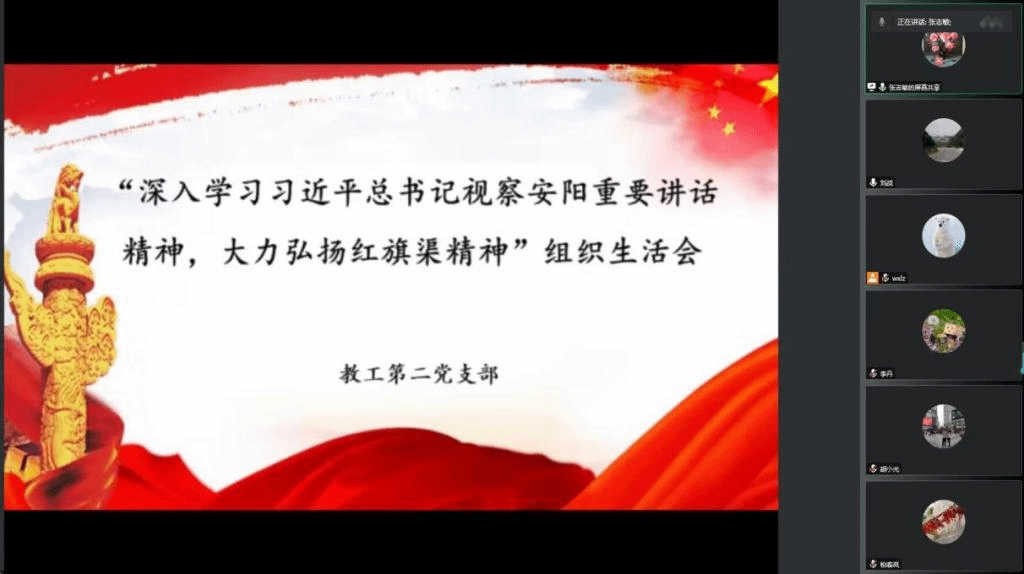 (通讯员:刘战)根据中共河南省委教育工委有关通知精神,为深入学习贯彻党的二十大精神和习近平总书记视察河南安阳重要讲话精神,不断增强党支部的组织力、凝聚力、战斗力,推动学校教育事业不断创造新的业绩。11月25日,教工第二党支部在线开展了“深入学习习近平总书记视察安阳重要讲话精神,大力弘扬红旗渠精神”为专题组织生活会。会议由支部书记张志敏主持,全体党员在线上参加会议,院长高松峰以普通党员身份参加组织生活会。