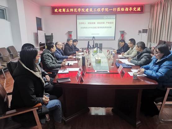 (通讯员 田野)2月9日上午,商丘师范学院建筑工程学院刘迪副院长率土木工程系、建筑工程系、实验中心负责同志一行4人来我院进行专题调研交流。学院副院长宋帅奇、吕大为、王仪及党政办、教务办、科研与校企合作办、实验中心、土木工程系有关负责同志参与接待交流。