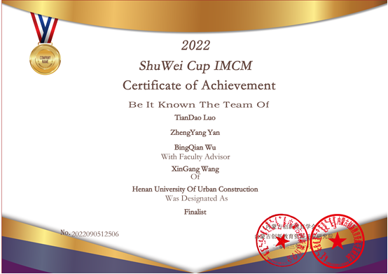 2022第七届数维杯国际大学生数学建模挑战赛特等奖提名:罗天道,闫正阳,武冰倩。指导老师:王新刚。