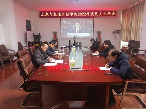 (通讯员 田野)2月14日上午,土木与交通工程学院在10号楼C203会议室召开2022年度中层以上党员领导干部民主生活会。学院全体领导班子成员参加会议,校纪委副书记李涛飞列席会议。会议由学院党委书记卫国祥主持。