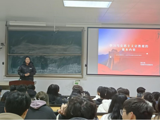 在团课上,各班团支书从认识宗教的本质、根源以及发展这三个方面向大家讲述了马克思主义宗教观的基本内容。同时为同学们宣讲党和国家关于民族宗教工作的相关政策。