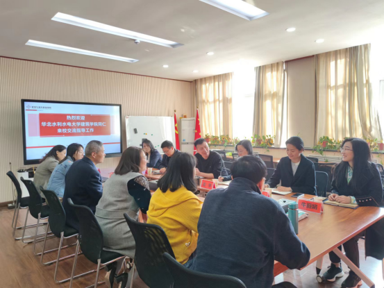 3月7日下午,华北水利水电大学建筑学院副院长范钦栋教授一行6人前来我校建筑与城市规划学院考察交流。建筑与城市规划学院党委书记王森、党委副书记刘花培、副院长朱晓菲、副院长赵玉凤及相关老师参加座谈交流会,会议由王森主持。