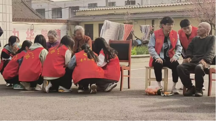 志愿者们先是在老年公寓完成了一些简单清扫活动,然后在工作人员的安排下,他们礼貌地进入老人们的房间,与他们聊天。老人们显得很开心,志愿者们的到来使院内老人倍感温暖。聊天之余同学们还带领老人们做了一些有益于身体健康的小活动,同学们也纷纷献上才艺表演,赢得了老人们热烈的掌声。待到老人们快用餐时,志愿者们将他们送回各自房间。整个活动过程在轻松愉快的氛围中度过,活动结束后,志愿者们在敬老院门口合影留念。