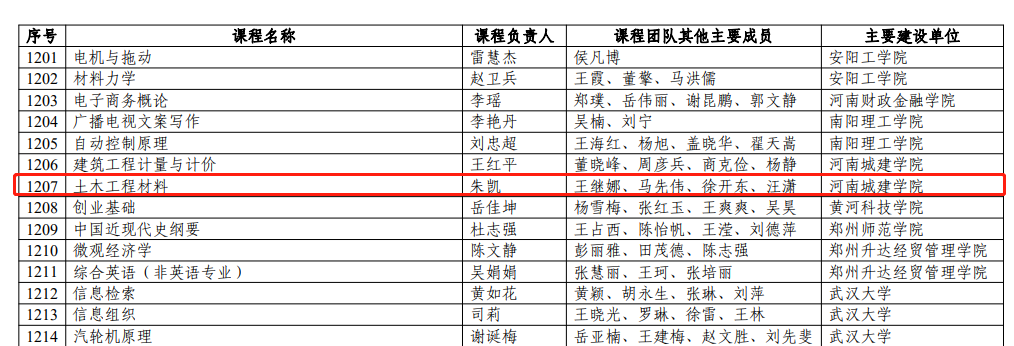 根据教育部《关于第二批国家级一流本科课程认定结果的公示》,我院朱凯教授主持的《土木工程材料》课程经个人申报、学校和省教育厅推荐,教育部组织网络评审和会议评审,最终被认定为第二批国家级线上线下混合式一流课程。
