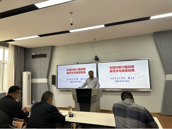 戴克良以“实施科教兴国战略,推进文化自信自强”为题,结合平顶山本土的历史文化,就建设教育强国,弘扬优秀文化,如何把马克思主义基本原理同中国具体实际相结合、同中华优秀传统文化相结合等内容与大家进行了交流。