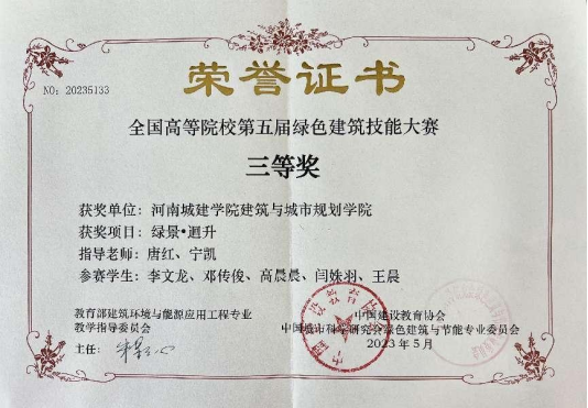 近日,全国高等院校第五届绿色建筑技能大赛获奖名单揭晓,我校建筑与城市规划学院教师唐红、宁凯指导的2019级建筑学专业学生在绿色低碳建筑设计赛道高校组中取得了三等奖的优异成绩。获奖学生及获奖作品:建筑学专业2019级学生李文龙、邓传俊、高晨晨、闫姝羽、王晨提交的设计作品《绿景·迴升》。