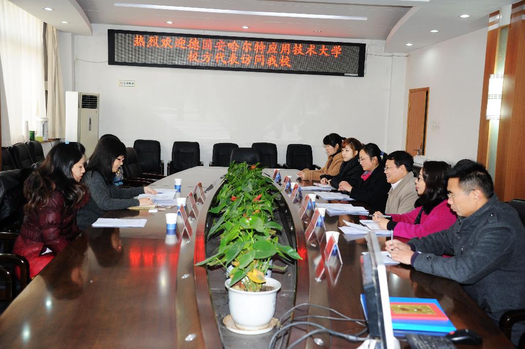 12月11日,德国安哈尔特应用技术大学国际处主任陆以理教授一行三人访问我校。副院长杨留栓教授会见了陆以理一行,并与其就合作办学有关事项进行交流洽谈。会议由国际交流处处长金利主持,规划与建筑系主任邢燕,国际交流处相关工作人员参加了会议。