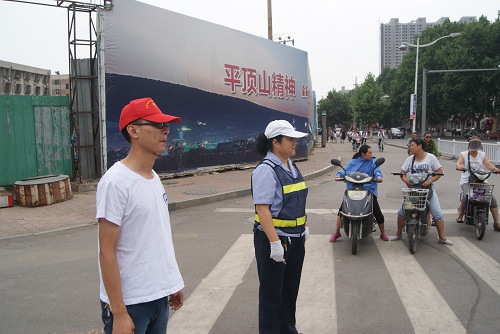 队员协助交通协管维护交通秩序