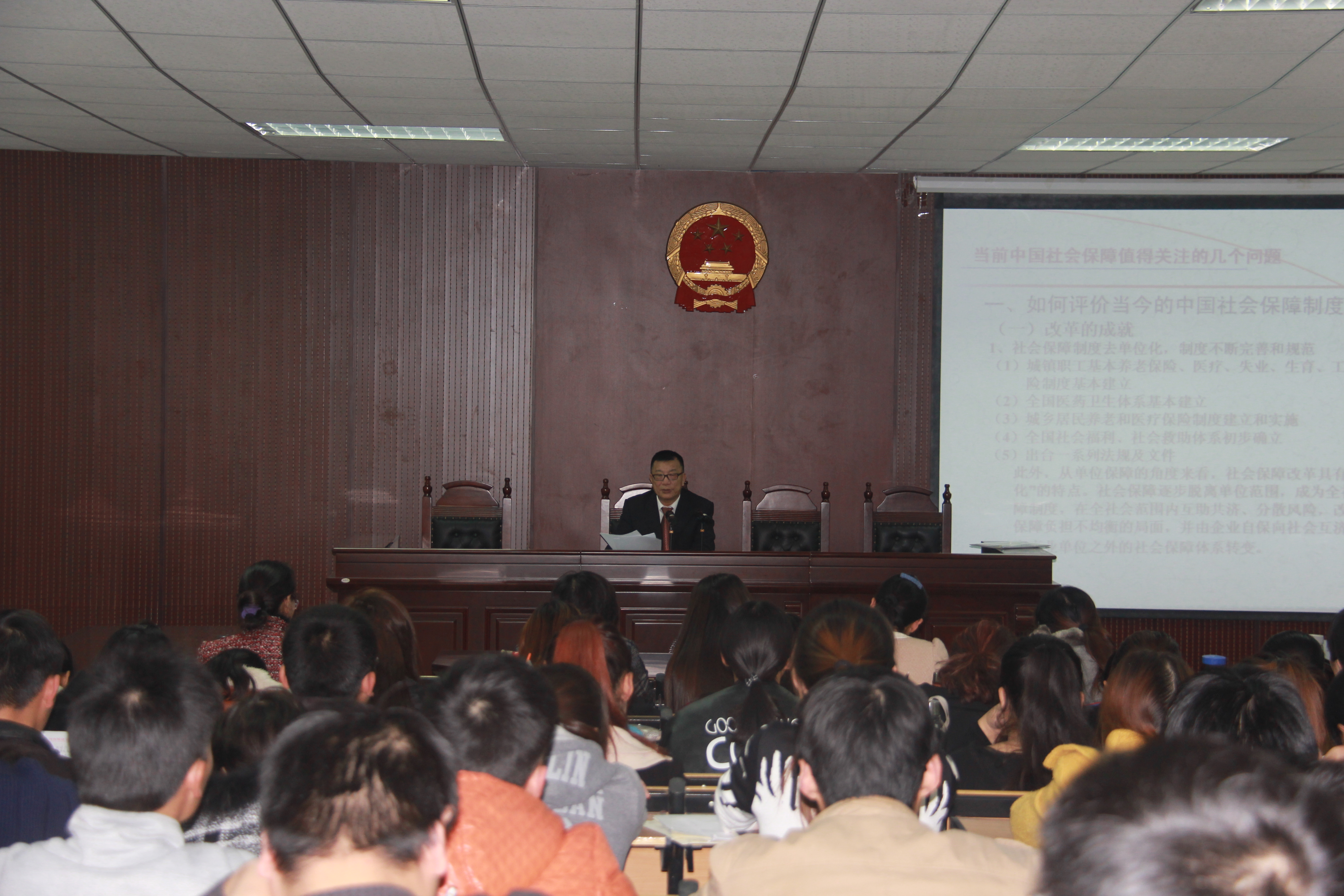 仪式前,邓大松与法学院师生代表就人才培养、专业建设、科学研究、课题申报等进行了座谈;仪式后,邓大松以“当前中国社会保障值得关注的问题”为题为该院200余名师生作了专题报告。