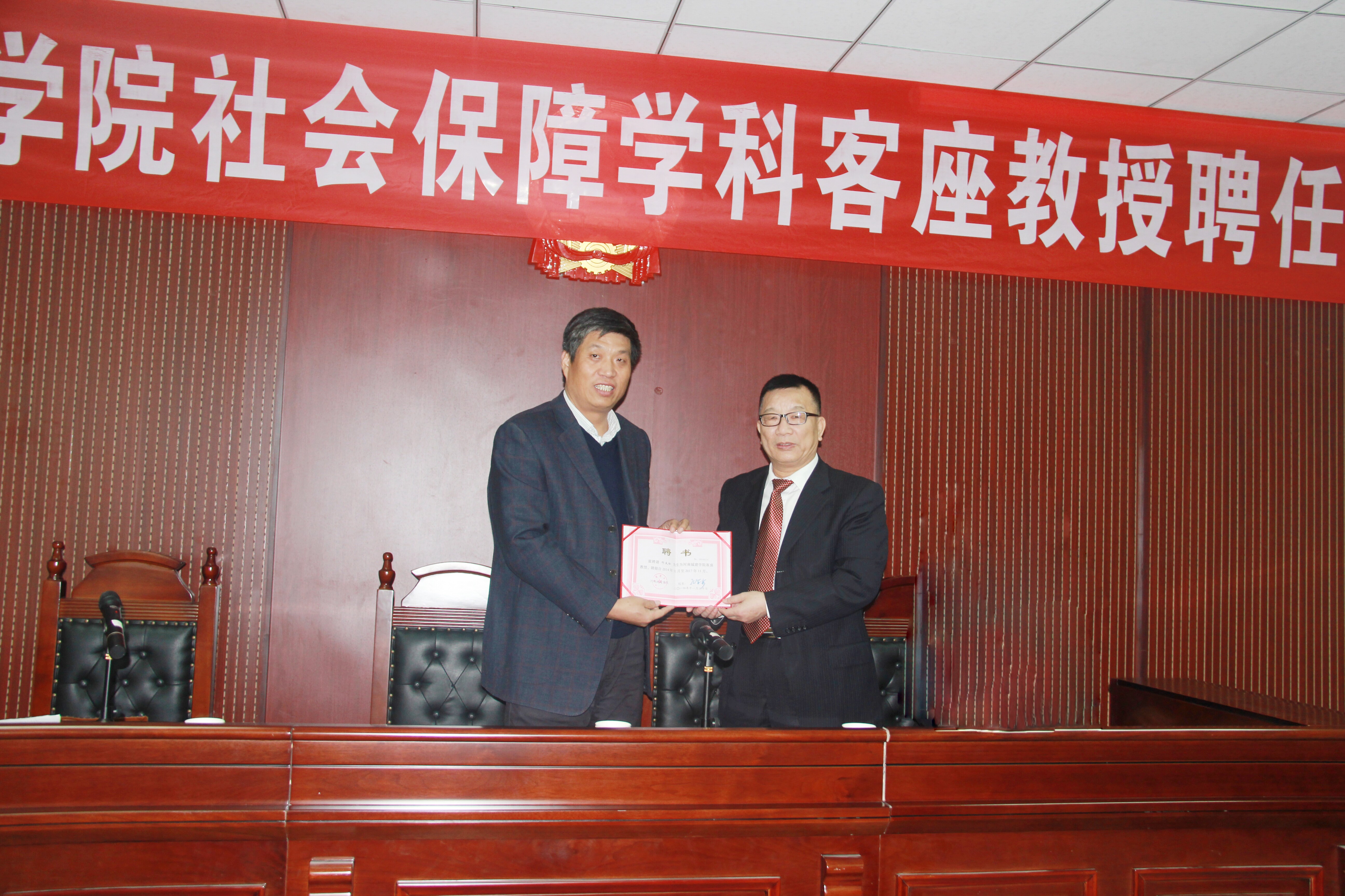 (通讯员 张强 董艳艳)11月20日下午,教育部公共管理学科教学指导委员会副主任、武汉大学博士生导师邓大松教授受聘我校劳动与社会保障学科客座教授仪式在法学院举行。副校长陈丙义出席仪式,人事处处长马明江、法学院院长王艳芳、党总支书记张龙栓以及师生代表参加仪式。