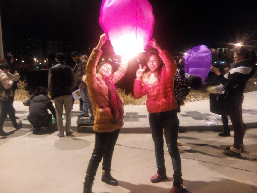 各学生团体在学院学生会办公室进行了“放飞梦想,祈福新年 ”汇报演出,表演了精心准备的歌舞、小品等节目,表达了对新年的良好祝愿。随后,同学们来到天桥上用黑色的马克笔在孔明灯上写下了各种祝福和愿望,有的希望中国梦早日实现,有的希望学校越办越好,有的希望父母健康长寿……在同学们的相互协作下,满载新年祝福与愿望的孔明灯,飞向遥远的星空,化做一颗颗璀璨的星星。