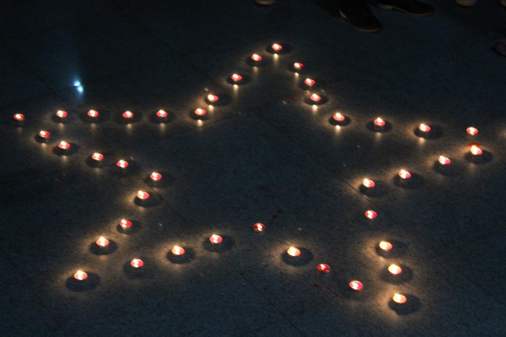 本次活动分为线上和线下两个部分,线上,建立革命先烈网上纪念馆,进行为期三天的网上祭奠;线下,4月3日晚,同学们在中心文化广场集合,用事先准备的蜡烛摆出五角星造型。同学们在五角星前庄严宣誓,默哀三分钟,以此来表达对革命先烈缅怀之情。