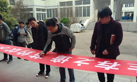 在数理学院团总支的指导下,青年志愿者协会进行了“爱护生存之境,节约饮水资源”的签名活动,数百名同学在条幅上签字,承诺要节约每一滴水。张贴的宣传海报以图片、数据的形式介绍目前国家水资源的现状、节约用水的意义、节水小窍门、水资源保护的要点和方法,提倡一水多用、废水再用的环保理念。大家表示,节约用水要从自己做起,从点滴做起,用实际行动节约保护水资源。